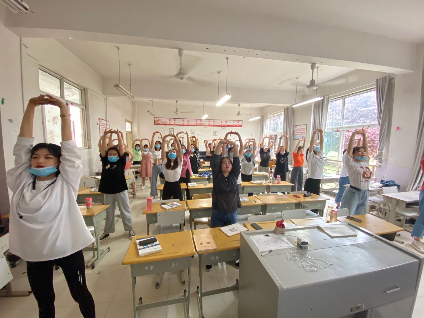 学生复学一周的时间了。每周学生都有的体育课程,经过体育学院领导班子的研究决定,根据疫情的特殊情况,本着安全第一、健身第一的运动效果,全体学生体育课均学习健身气功—八段锦。 八段锦长期练习可使人强身健体、聪耳明目、延年益寿。用现代科学医术分析,就是活动全身关节、肌肉、调节精神紧张、改善新陈代谢、增强心肺功能、促进血液循环,从而提高人体各个生理机能。